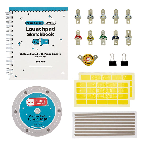 Our brand new Launchpad Sketchbook Kit is an all-inclusive educational kit designed to introduce paper circuit skills and concepts to total beginners. The classroom edition contains materials for 40 students.