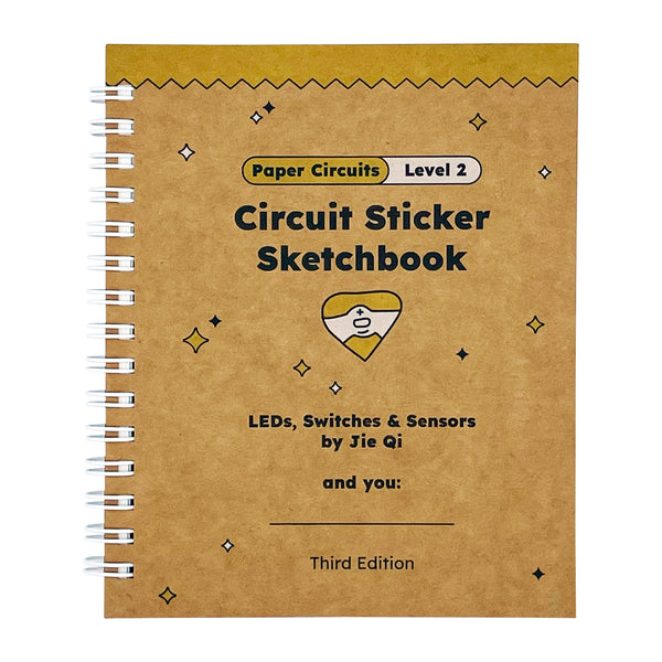 The newest edition of our Circuit Sticker Sketchbook is intended for use with LED stickers and Launchpad Batteries. It offers a deeper dive into paper circuits, including instruction on the use of switches, sensors, and LED stickers.